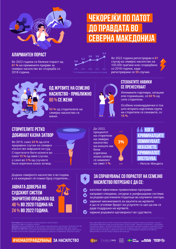 Во анализата се истакнува и дека додека семејното насилство е во подем, а се казнуваат се помал број на сторители, јавната доверба во судскиот систем значително опаднала од 48% во 2020 година на 24% во 2022 година.