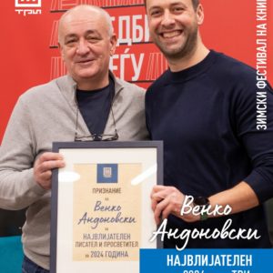 На синоќешната средба меѓу писателите и читателите во книжарницата ТРИ (Градски трговски центар), македонскиот писател, професор и книжевен теоретичар Венко Андоновски се здоби со Признание за највлијателен писател и просветител во 2024 година во ТРИ.