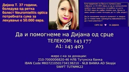 Дијана Трипуновска од Маврови Анови боледува од ретка болест која го напаѓа нејзиниот вид и центарот за движење и рамнотежа.