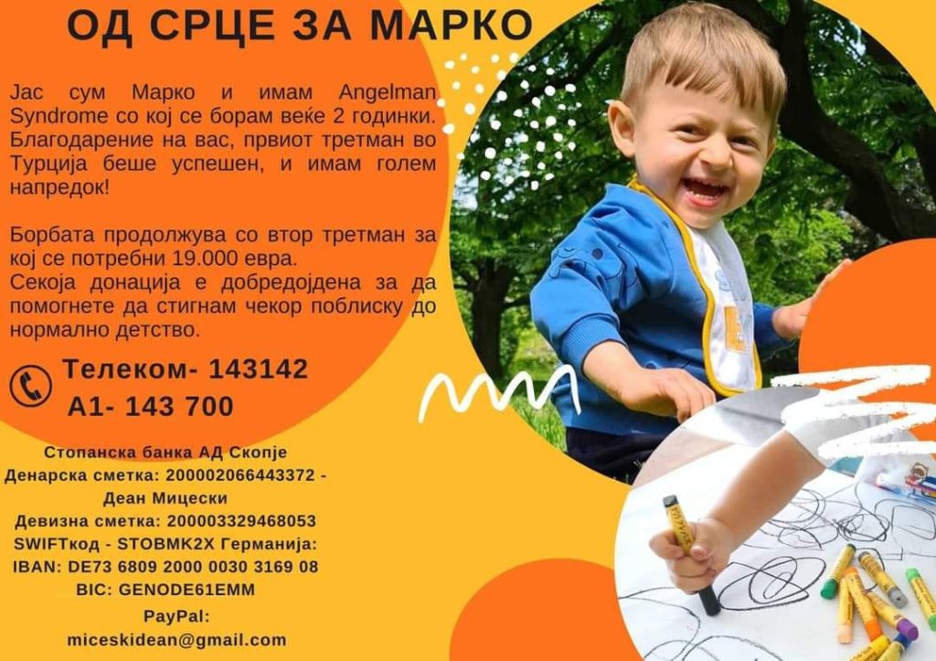 Двегодишниот Марко има Angelman Syndrome поради кој се појавуваат пречки во развојот.