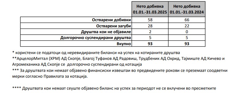 Македонската берза објави преглед за тоа како работеле друштвата кои котираат на Берзата во првите три месеци од годинава.