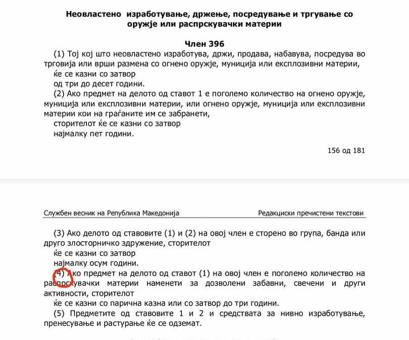 Но, според Кривичниот законик (КЗ), набавката и држењето на распрскувачки материи е кривично дело.