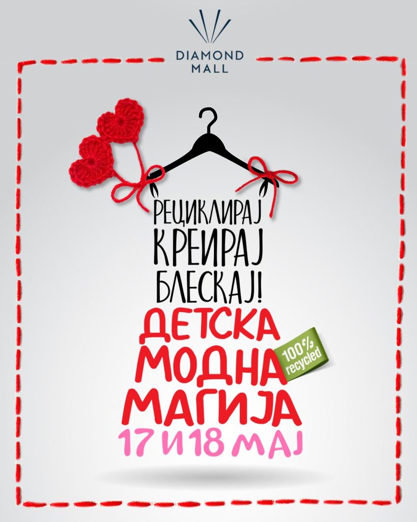 Под мотото „Рециклирај, креирај, блескај“, на 17. и 18. мај, Дајмонд мол организира низа активности за подигнување на свесноста за повторна употреба и рециклирање на отпадот, со цел да се изградат еколошки ставови, особено кај помладите, и преку тоа да се придонесе кон намалување на текстилниот и други видови отпад.