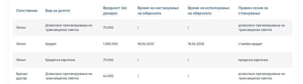 На свое име пријавила и станбен кредит од 1,3 милион денари, кој треба да го врати до 2028 година.