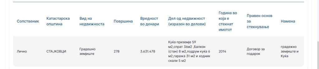Пријавила само две работи, а втората е нејзината плата во македонска Пошта, каде работела пред да стане заменик министерка.
