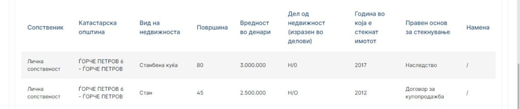 На свое име пријавила дел од куќа од наследство во скопски Ѓорче Петров, како и стан.