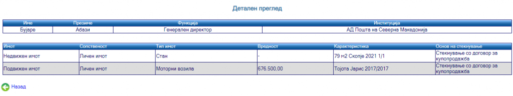 еМагазин го разгледа нејзиниот анкетен лист кој го доставила до Антикорупциската комисија кога станала директорка.