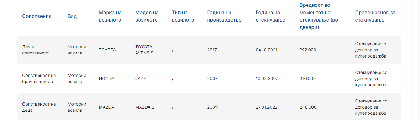 Вози Тојота, на име на сопругата пријавил Хонда, а на децата Мазда.