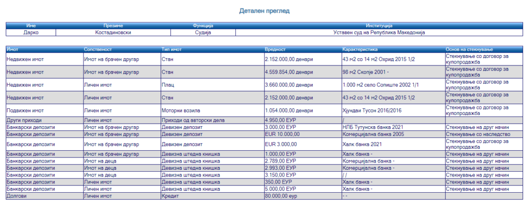 еМагазин го разгледа неговиот анкетен лист кој го доставил до Антикорупциската комисија кога станал уставен судија.