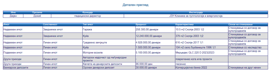 еМагазин го разгледа анкетниот лист на Докиќ, кој го доставил до Антикорупциската комисија кога станал директор.