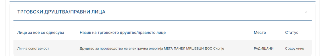 А е содружник и во трговско друштво за производство на електрична енергија.