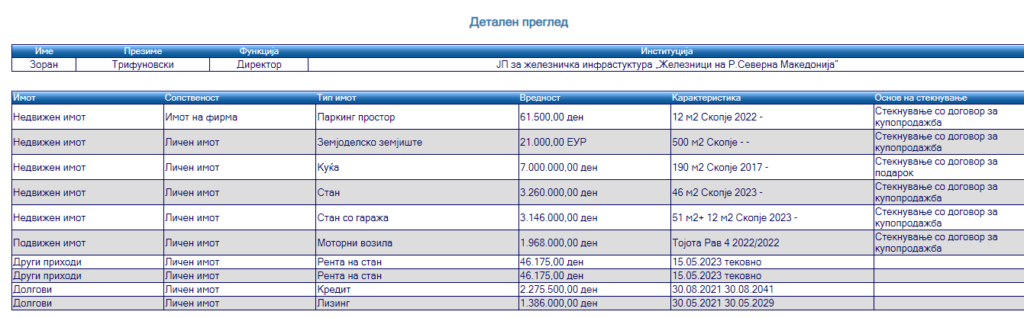 Каков имот пријавил Зоран Трифуновски, поранешниот директор на Железници инфраструктура, на чие место дојде Синиша Ивановски