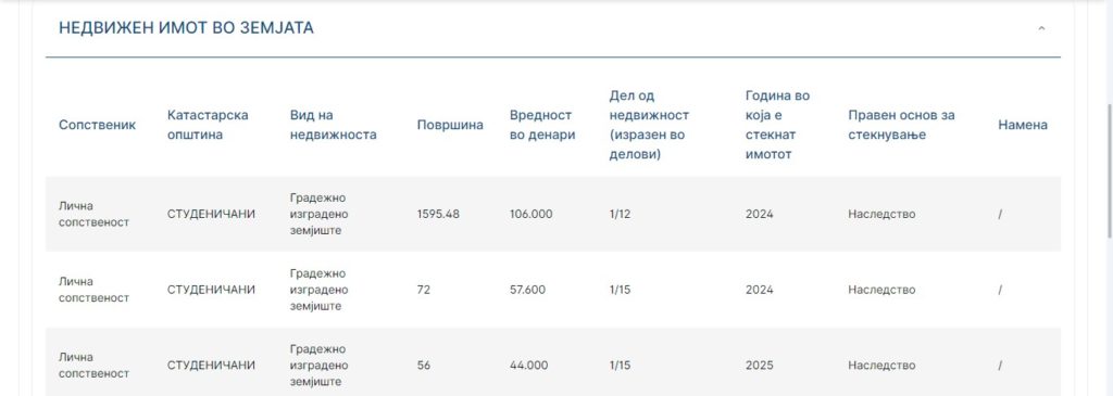 Пријавил неколку парцели градежно изградено земјиште во Студеничани, од наследство, за кои нема податоци што има на нив.
