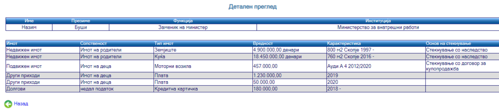 На име на родителите пријавил куќа и земјиште во Скопје, а на име на децата Ауди А4.