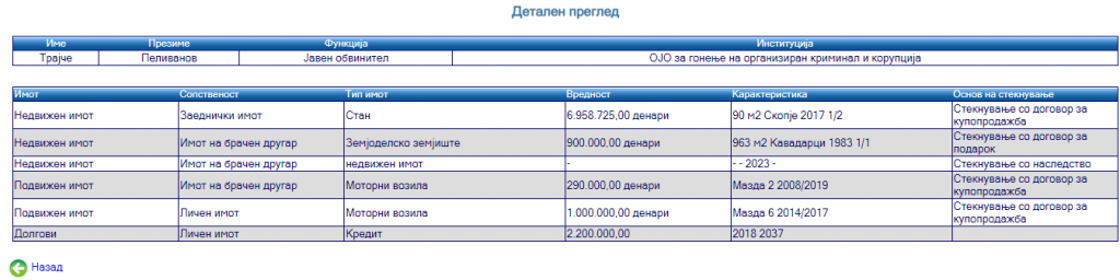 еМагазин го разгледа неговиот анкетен лист, кој го доставил до Антикорупциската комисија, кога станал обвинител во Основното јавно обвинителство за гонење организиран криминал и корупција.