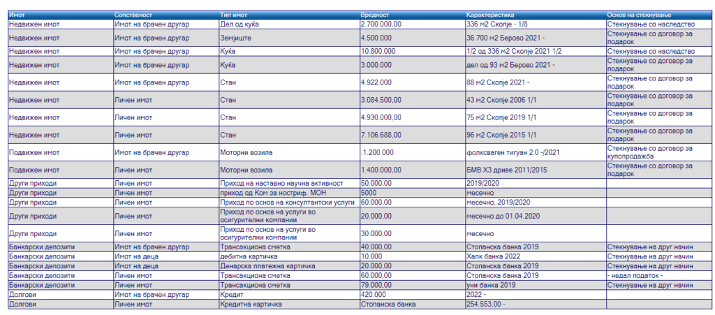 На име на сопругата пријавил и кредит од 420 илјади денари, за кој не дал податок кога треба да се врати.
