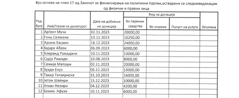 Кои се донатори на ДУИ и од што се финансирала партијата лани