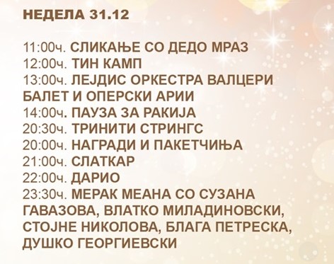 Скопје денеска ќе има организиран целодневен дочек на Новата 2024 година на плоштадот „Македонија„ во центарот на градот.