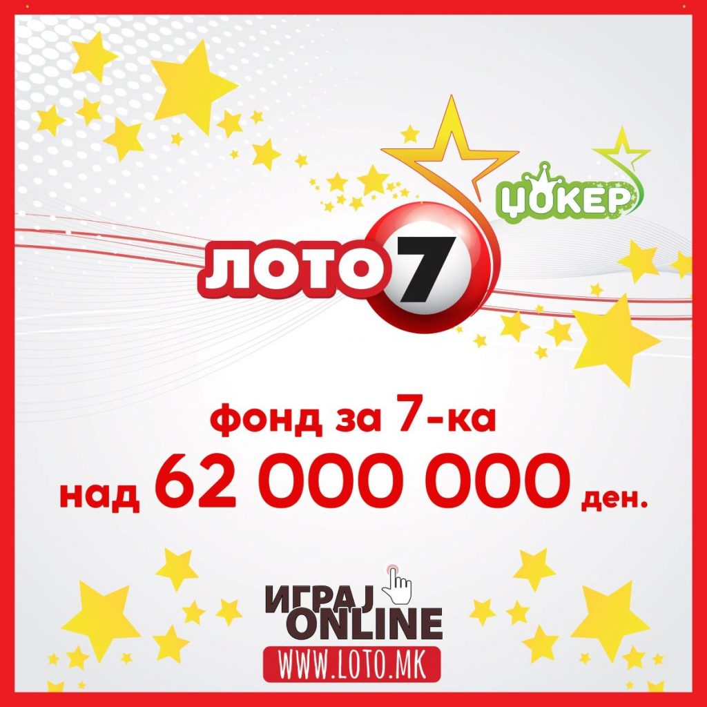 Над 1 милион евра или 62 милиони денари е премијата на Лото 7 на Државна лотарија, информираат од таму.
