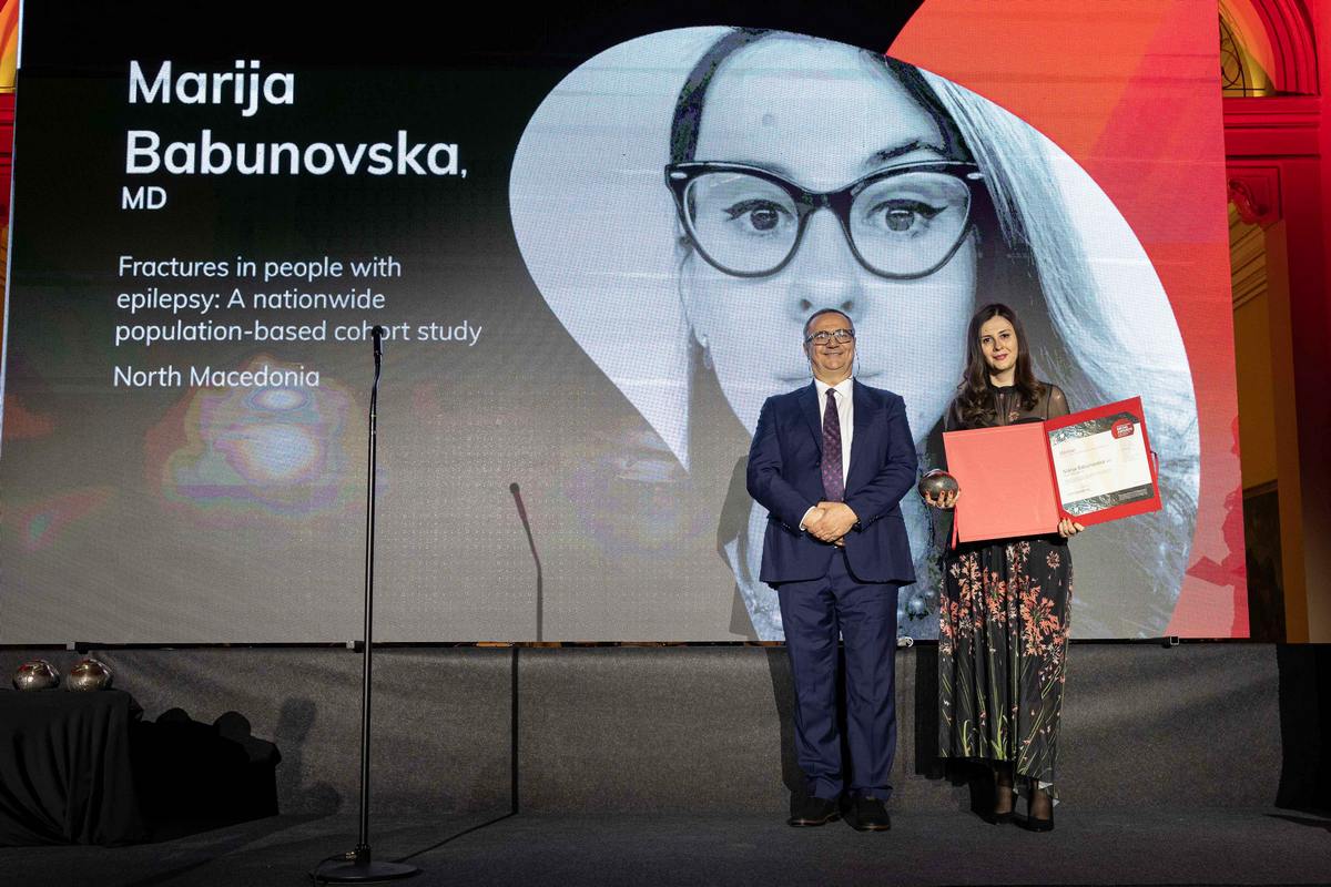Меѓу, деветте победници оваа година е и Марија Бабуновска, невролог од Универзитетската клиника за неврологија, со нејзиниот научен труд „Фрактури кај лица со епилепсија: Кохортна студија базирана на национално ниво“ објавена во научното списание „Epilepsia Open“.