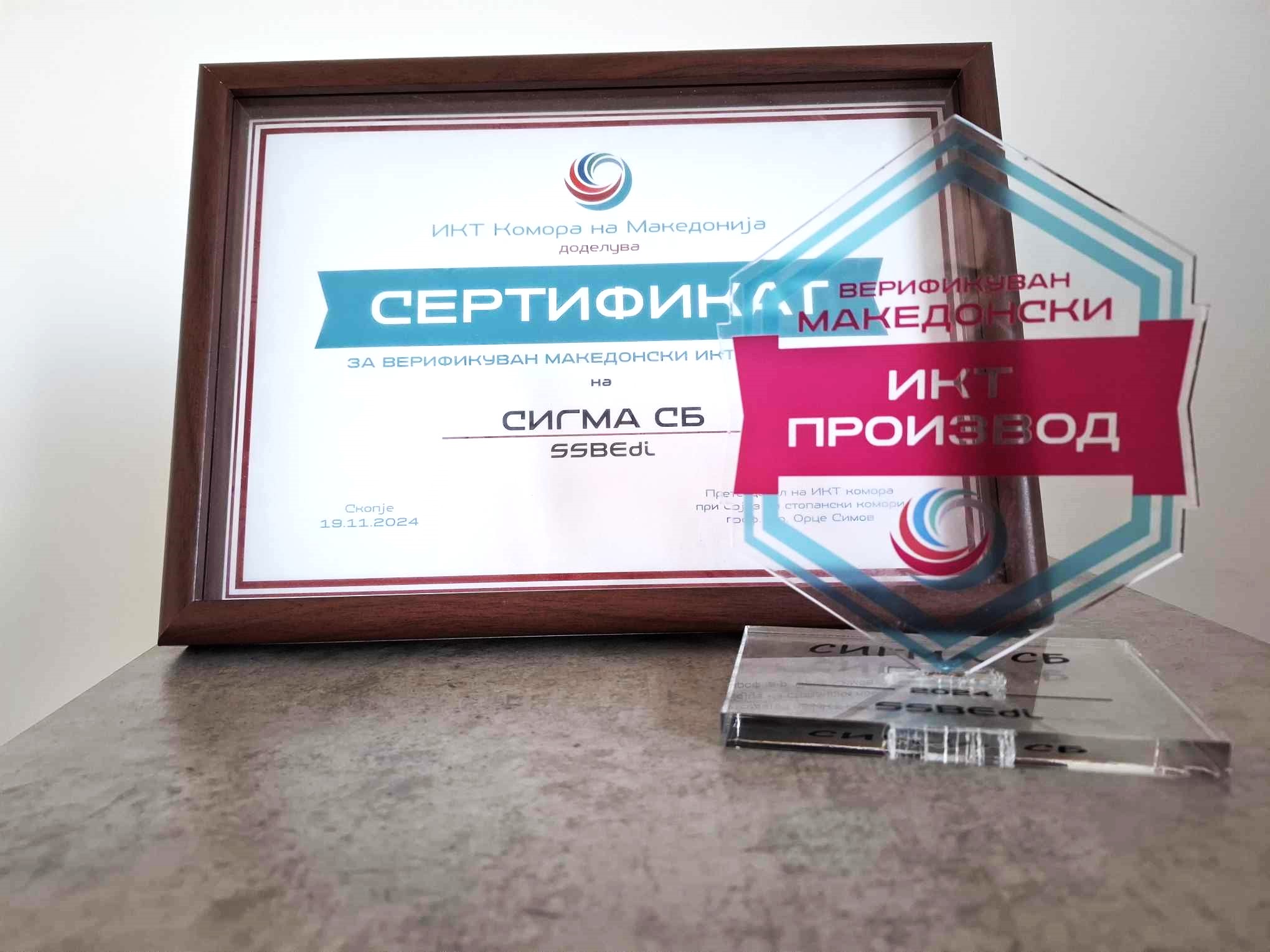 Меѓу добитниците на наградите, Сигма-СБ се истакна со признание за својот ИКТ производ ССБ Еди, кој беше награден со сертификат за верификуван македонски производ.