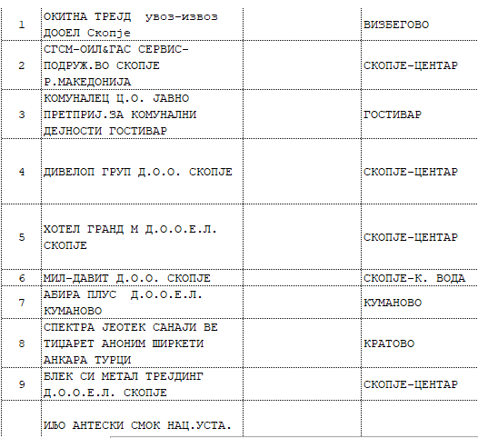 Меѓу десетте најголемии должници останува фирмата поврзана со поранешниот прв човек на Управата за безбедност и контраразузнавање (УБК), Сашо Мијалков.