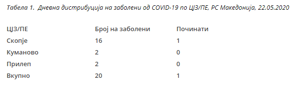 Вчера во Македонија беа регистрирани 20 нови лица заразени со корона вирусот.