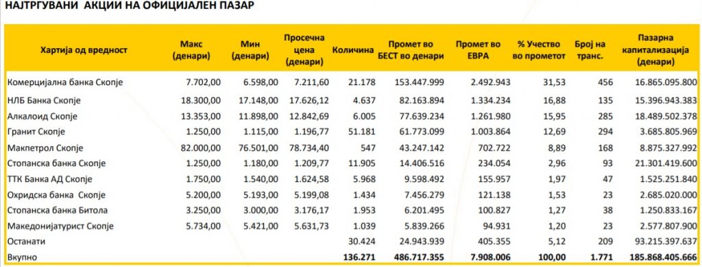 Македонската берза го објави билтенот за јануари, годинава во кој може да се види листата најтргувани акции.