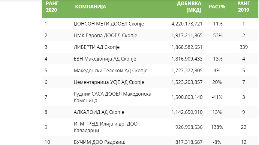 Оваа се Топ 10 компании според добивка, а целата листа ОВДЕ.