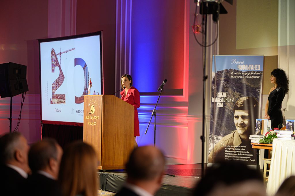 На прославата, со која се одбележаа 20 години јубилеј на интернационалниот бренд Адора, 45 години работен стаж, 35 години од докторирањето и 30 години успешно менаџирање на неговиот основач проф. д-р Ванчо Чифлиганец и 30 години самостојна Македонија, им беше изразена благодарност за заедничките успеси и поддршката на тимот на компанијата, институциите, соработниците и сите пријатели на големото семејство Адора инженеринг.