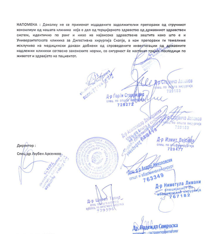 Правниот тим на Јовановски, во соопштението споделува и медициска документација со која, како што вели, се докажува дека во затворот „Идризово“, каде се наоѓа на издржување на казна затвор, е вратен со метаплазиран желудник, претканцерогена состојба и во лоша здравствена состојба