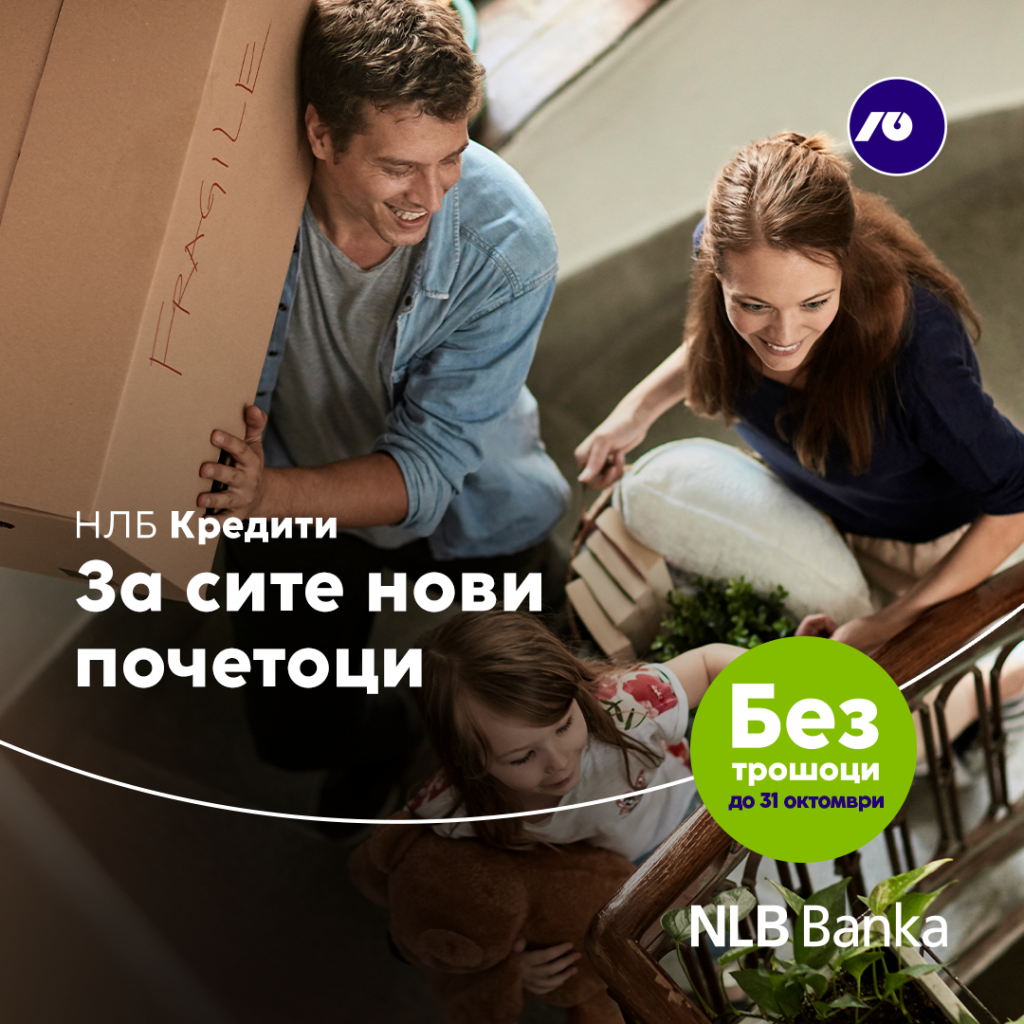 Во период од 1 септември до 31 октомври сите кои ќе аплицираат во НЛБ Банка за станбен, потрошувачки, хипотекарен или автомобилски кредит добиваат единствена можност бараниот кредит да го добијат без трошоци за одобрување и без трошоци за проценка на недвижност за кредитите со обезбедување на недвижен имот. Постапката за одобрување е брза и едноставна, посочуваат од таму.