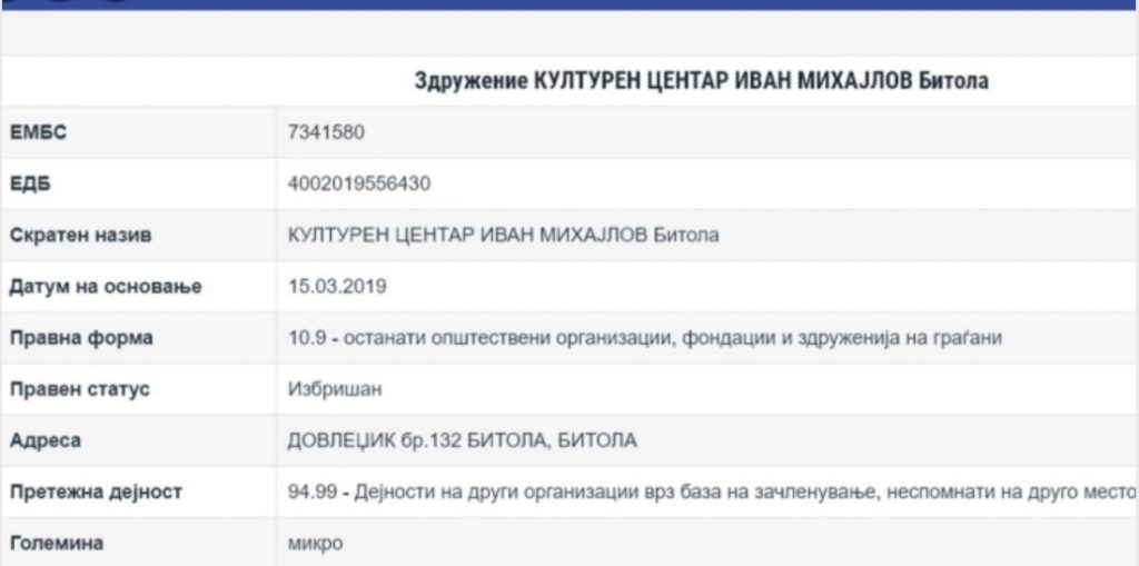 „Министерот Лога го потпиша решението имајќи го предвид негативното мислење на Комисијата за употреба на имиња на личности која денеска одржа седница и во образложението за негативното мислење наведе дека именувањето на какво било здружение на граѓани со името Иван (Ванчо) Михајлов претставува навреда и провокација на националните чувства на македонскиот народ со оглед на неговото јавно и постојано негирање на македонскиот идентитет, јазик и култура. Величењето и славењето на неговиот лик и дело предизвикуваат нетрпеливост, нетолеранција и омраза во македонското општество,“ информираа на 16 март од Министерството за правда.
