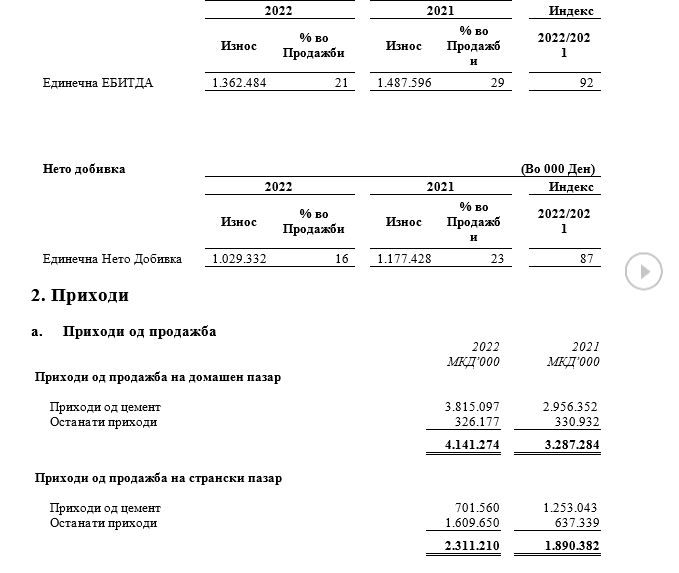 Цементарница Усје АД Скопје за периодот јануари – декември 2022 година оствари позитивни финансиски резултати искажани во неревидираните единечни финансиски извештаи, информираат од Друштвото преку Македонската берза.