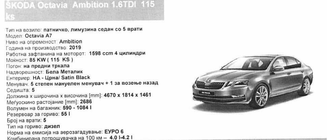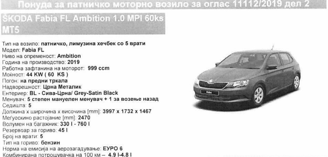 Предмет на набавка се две возила „Шкода Октавија“ и „Шкода Фабиа“