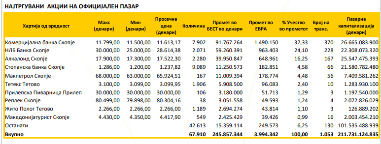 Македонската берза го објави билтенот за јуни, а оваа се најтргуваните акции за тој период: