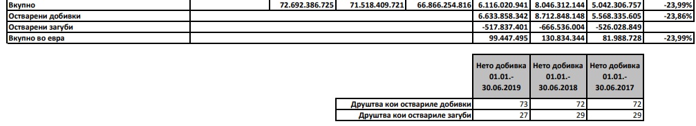 Податоците на берзата покажуваат дека во периодот јануари-јуни 77 компании работеле со добивка, а 27 компании работеле со загуба.