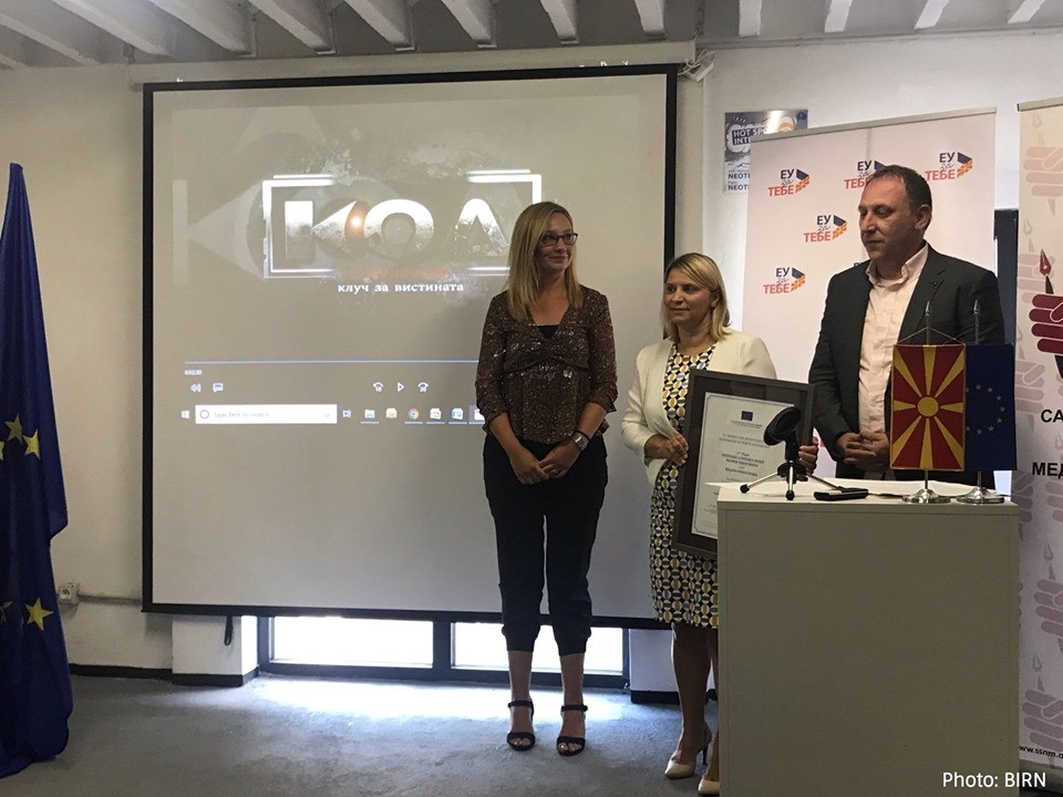 Првата награда ја добија Снежана Лупевска Созен, Миомир Серафиновиќ и Билјана Николовска за истражувачката сторија „Крадење идентитети на граѓани за криминални цели“.