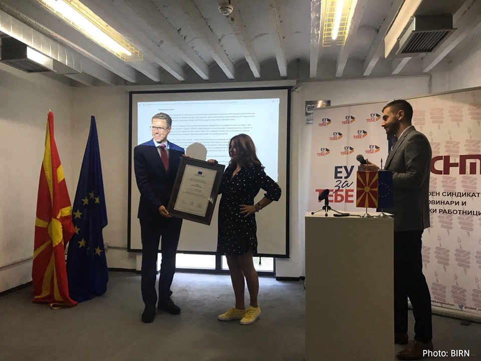 Амбасадорот на Европската Унија во земјава, Самуел Жбогар денеска ги додели наградите на ЕУ за истражувачко новинарство.