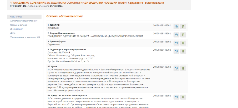 Порталот 360 степени објави дека во Централниот регистар на Бугарија пишува дека Граѓанското здружение за заштита на основни индивидуални човечки права, кое го отвори македонскиот културен клуб „Никола Вапцаров“ во Благоевград, е „во ликвидација“.
