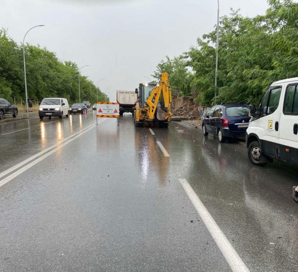 Екипи на ЈП Улици и патишта – Скопје денеска веднаш по настанатото оштетување на паднатиот потпорен ѕид на булеварот „Борис Трајковски“ на семафорите во населба Пинтија, извршија негово расчистување.