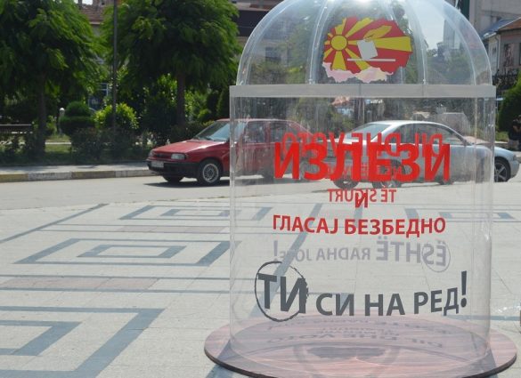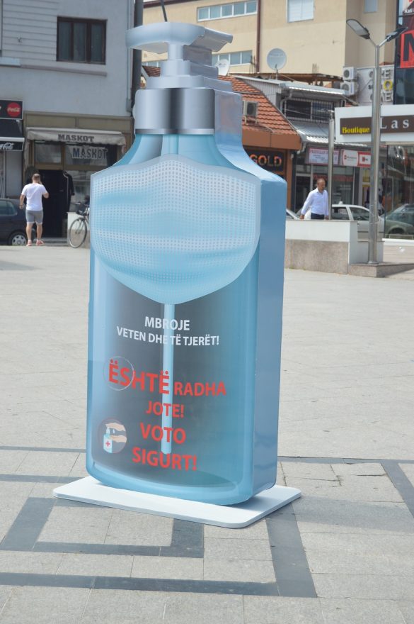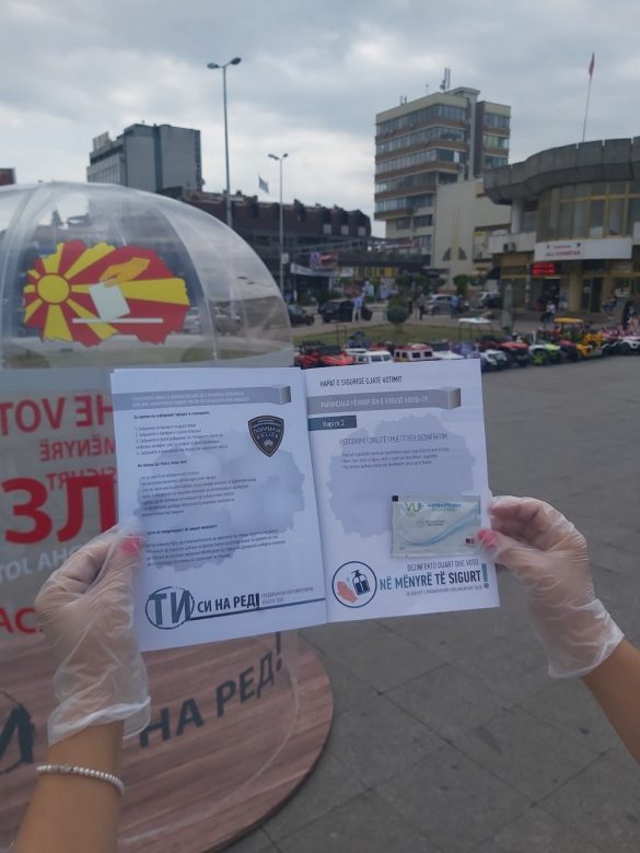 На плоштадите во Тетово и Гостивар, беа поставени препознатливите големи поставки од големо стаклено ѕвоно и гел за дезинфекција со цел да им се приближат пораките за безбедно гласање до гласачите. Случајните минувачи добија едукативни брошури и флаери со насоки за безбедно гласање.