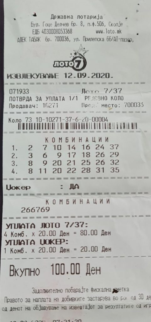 Ја испочитувавме вољата на семејството и ние заминавме кај нив, за да се сретнеме во Битола со целото семејство. Договорената средба беше пред среќното место „Алек Табак“ (на Ат пазар), каде што Лаци, на 12 септември, како и редовно пред одење на работа, уплатил 100 денари за 4 комбинации Лото7 и еден Џокер“, велат од Државна лотарија.