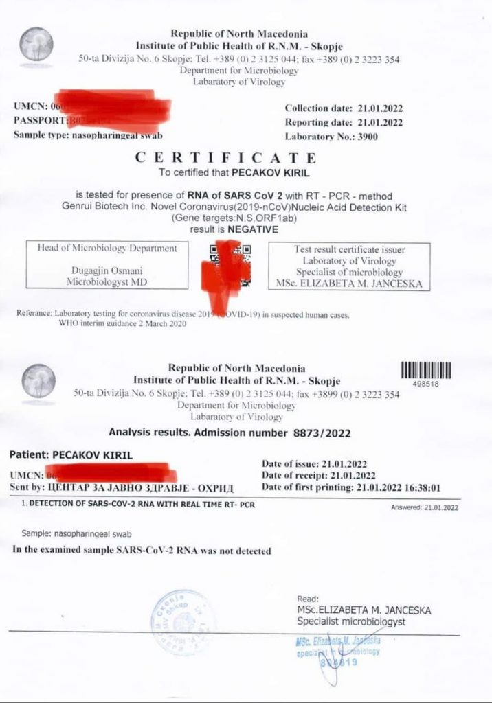 И двете тестирања биле спроведени во истата установа – во Центарот за јавно здравје во Охрид.