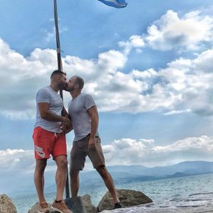 Грчкиот полицаец Мајкл Лолис, стана топ тема во Грција, откако на својот Фејсбук профил објави фотографија како се бакнува со момче под грчко знаме, пренесува дописникот на еМагазин од Солун.