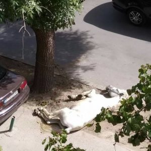 Пејачот на групата „Фолтин“, Бранислав Николов на својот Фејсбук профил објави фотографија на која може да се види преубав бел коњ заврзан за дрво во Битола.