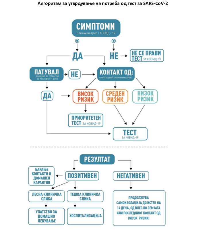 Лекарката Гордана Николиќ од Куманово, која на нејзиниот фејсбук-профил информираше за нејзината состојба со корона вирусот, исто така објави и фотографија од алгоритмот според кој, здравствените работници одредуваат кој треба да се тестира.
