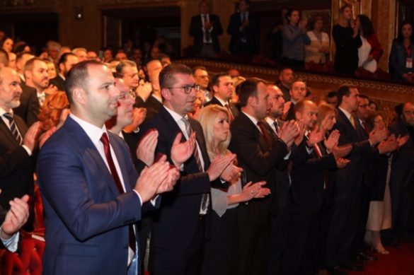 Присутните на моменти скандираа Македонија, а имаше и овации на говорот на претседателот на партијата Христијан Мицкоски.