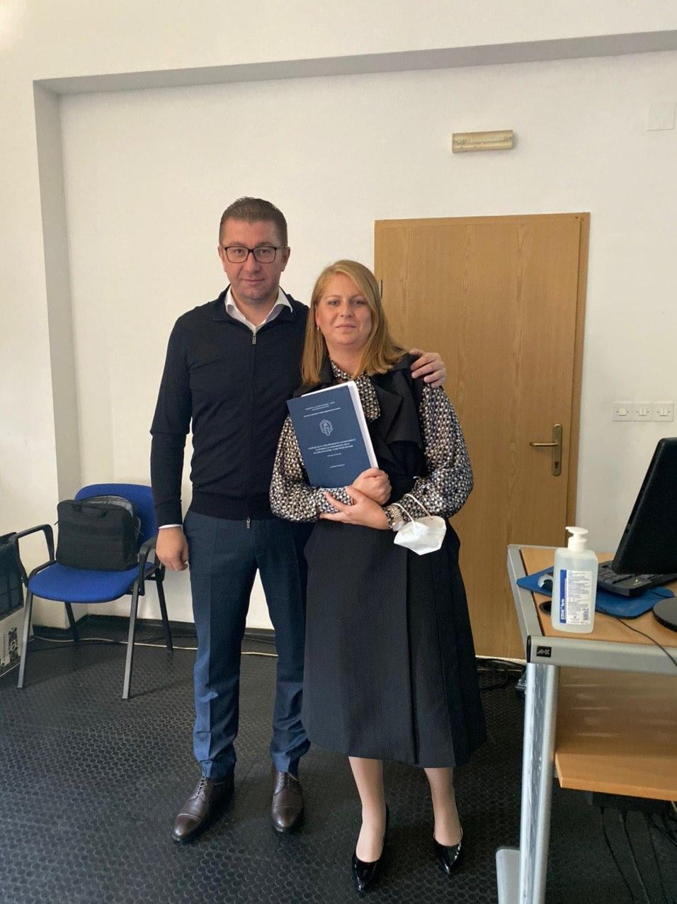 „Ивана денес ја одбрани докторската дисертација на Фармацевтскиот факултет при Универзитетот „Св. Кирил и Методиј“ и стана доктор по фармацевтски науки. Честитки до менторот и тимот професори кои несебично ја водеа низ процесот. Сестро, многу успеси на професионален и приватен план од срце ти посакувам,“ напиша Мицоски.