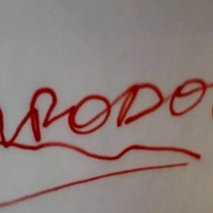 (Фото) На вратата од станот на градоначалникот на Солун, Бутарис, му напишаа „предавник“